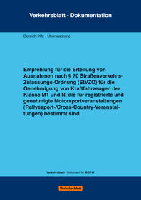 Empfehlungen für die Erteilung von Ausnahmegenehmigungen nach § 70 Straßenverkehrs-Zulassungs-Ordnung für die Genehmigung von Kraftfahrzeugen der Klasse M1 und N, die für registrierte und genehmigte Motorsportveranstaltungen (Rallyesport-/Cross-Country-Veranstaltungen) bstimmt sind