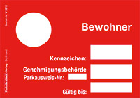Parkausweis für Bewohner rot